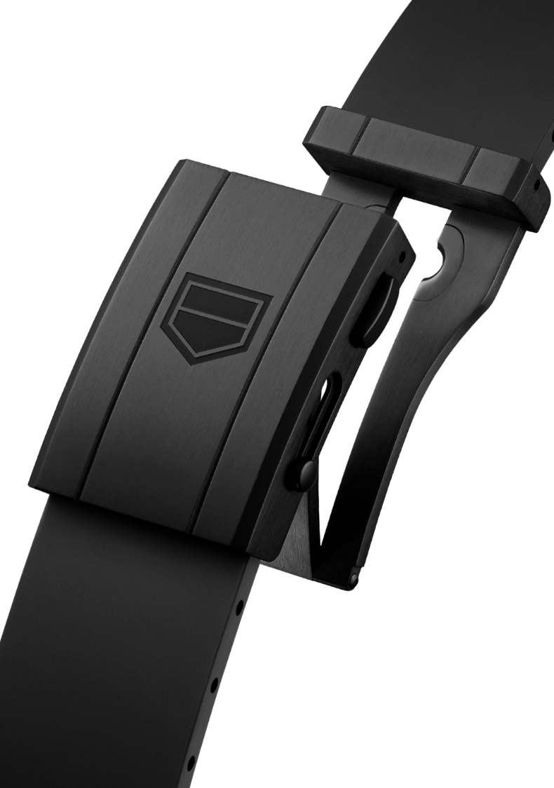 喷砂处理的黑色DLC涂层2级钛金属旋入式表背,搭配蓝宝石表镜,并饰以特别镌刻字样